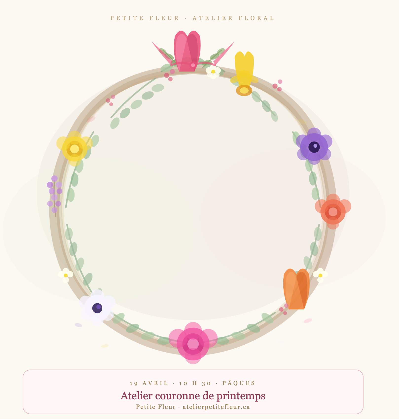 19 avril · 10 h 30 — Couronne de printemps 🌸