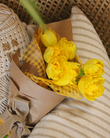 - Bouquet lié & emballage signature en papier kraft