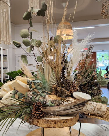 Chaque composition est entièrement personnalisable afin de s’adapter parfaitement à votre décor, que ce soit par le choix des teintes, des textures ou du contenant. Offrez ou adoptez une création unique qui traverse le temps et sublime votre espace!