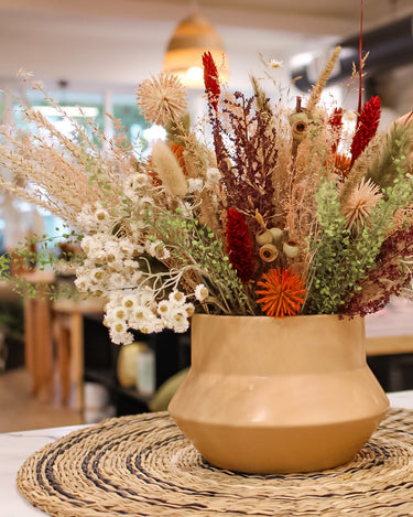Apportez une touche naturelle et raffinée à votre intérieur avec nos arrangements de fleurs séchées, parfaits comme centre de table ou élément décoratif intemporel. Conçus pour s’harmoniser avec tous les styles, ils allient élégance, authenticité et douceur, sans nécessiter d’entretien.