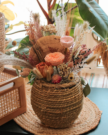 Apportez une touche de poésie naturelle à votre décoration avec nos magnifiques centres de table composés de fleurs séchées et préservées. Chaque création est soigneusement élaborée à la main, mêlant textures, couleurs douces et nuances intemporelles pour sublimer vos événements ou embellir votre intérieur.