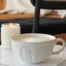Une grande tasse pour grands cafés ou chocolats chauds, arborant de jolies fleurs.